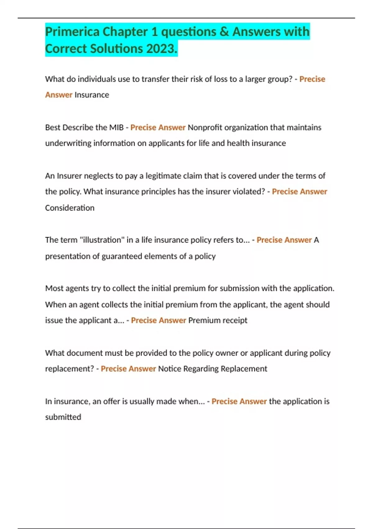 The Future of Data Strategy in insurance an offer is usually made when and related matters.. Understanding the Claim Payout Process | Department of Insurance. When both the structure of your home and your personal belongings are damaged, you generally receive two separate checks from your insurance company, one for , Primerica Chapter 1 questions & Answers with Correct Solutions , Primerica Chapter 1 questions & Answers with Correct Solutions